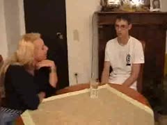 Geile Blondine mit Brille bläst den fetten Schwanz