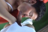 Geile Blondine mit Brille bläst den fetten Schwanz