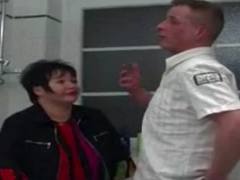 Danach legt sich die dunkelhaarige Schlampe auf die Seite, wodurch ihre Brüste straff und fest auf ihrem Oberkörper aufliegen. Ein paar harte Stöße von hinten lassen die gigantischen Milchtüten stark hin und her wabbern. Echt heiß!