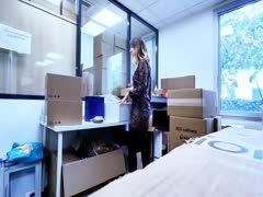Geile Blondine mit Brille bläst den fetten Schwanz