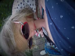 Geile Blondine mit Brille bläst den fetten Schwanz