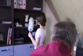 Junge Schwarzhaarige liebt Sex beim Putzen