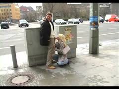 Geile Blondine mit Brille bläst den fetten Schwanz