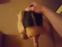 Geile Blondine mit Brille bläst den fetten Schwanz