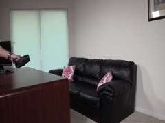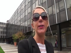 Geile Blondine mit Brille bläst den fetten Schwanz