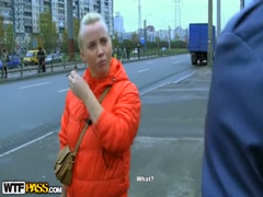 Geile Blondine mit Brille bläst den fetten Schwanz