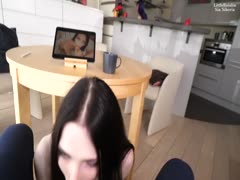 Junge Schwarzhaarige liebt Sex beim Putzen