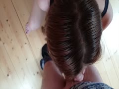 Geile Blondine mit Brille bläst den fetten Schwanz
