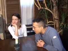 Geile Blondine mit Brille bläst den fetten Schwanz