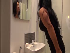 Junge Schwarzhaarige liebt Sex beim Putzen