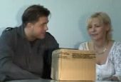 Geile Blondine mit Brille bläst den fetten Schwanz