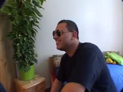 Geile Blondine mit Brille bläst den fetten Schwanz